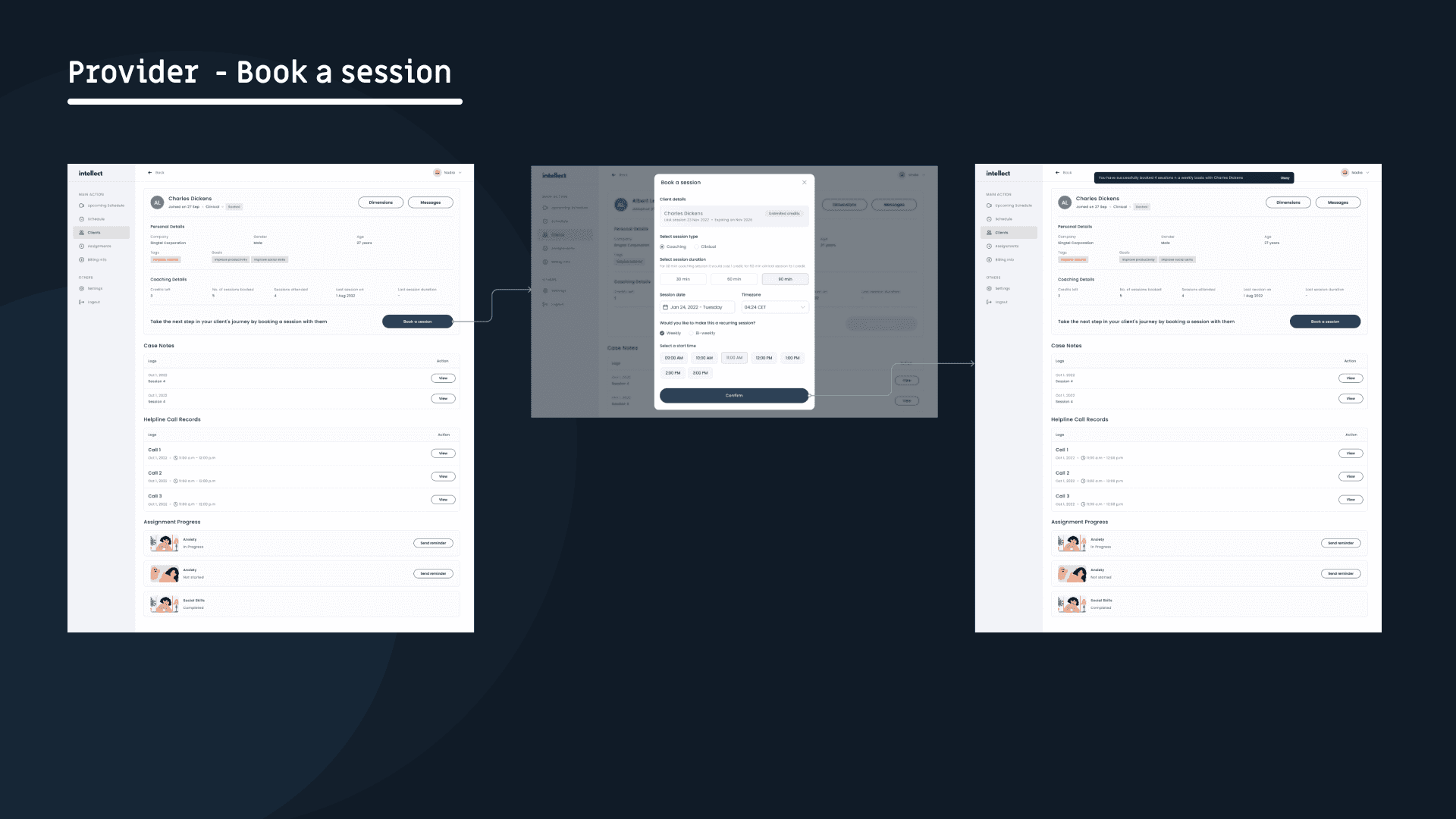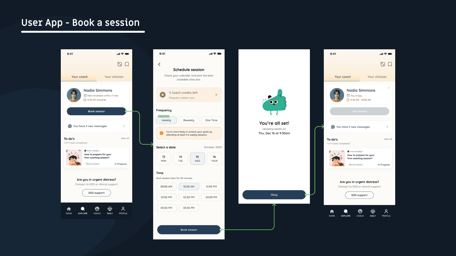 Vision is to successfully take the user through the journey of reaching the goals. We as domain expert, should be able to recommend the ideal duration of intervention required & get the buy-in from the user, which is booking all sessions at once.
