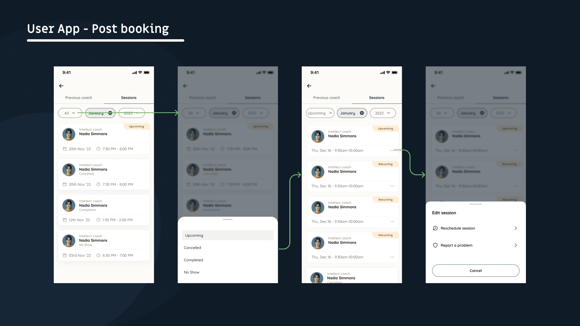 By implementing intuitive design solutions that enhance user engagement and address the issue of motivation, we anticipate a boost in user satisfaction and commitment to their session, directly impacting average session ratings. This heightened engagement is projected to result in higher average session ratings as users are more inclined to actively participate and find value in each session. Moreover, the streamlined user experience and increased user motivation to book and attend sessions should lead to an impressive two-fold increase in utilization rates, ultimately maximizing the app's impact and contributing to improved health outcomes and renewals.